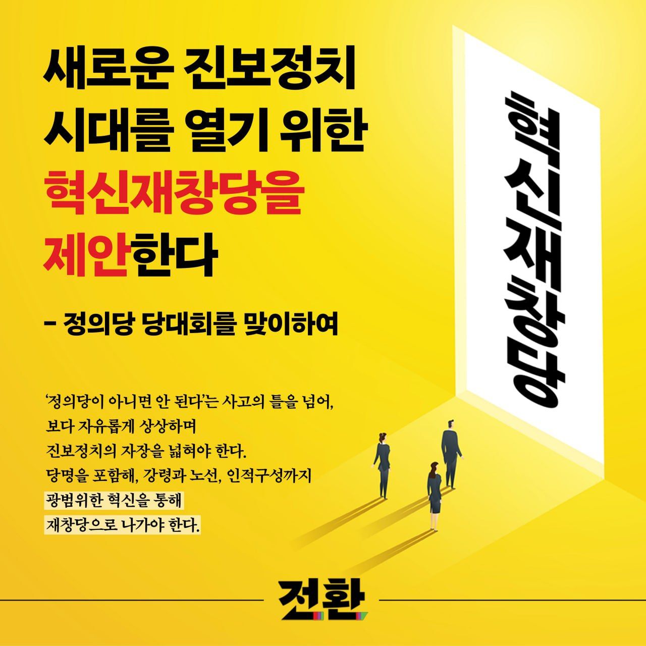 ‘정의당이 아니면 안 된다’는 사고의 틀을 넘어, 보다 자유롭게 상상하며 진보정치의 자장을 넓혀야 한다. 당명을 포함해, 강령과 노선, 인적구성까지 광범위한 혁신을 통해 재창당으로 나가야 한다.