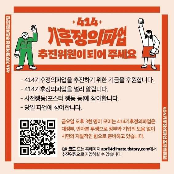 전환도 조직위원회에 함께 참여하고 있는 414기후정의파업 추진위원이 되어주세요~
