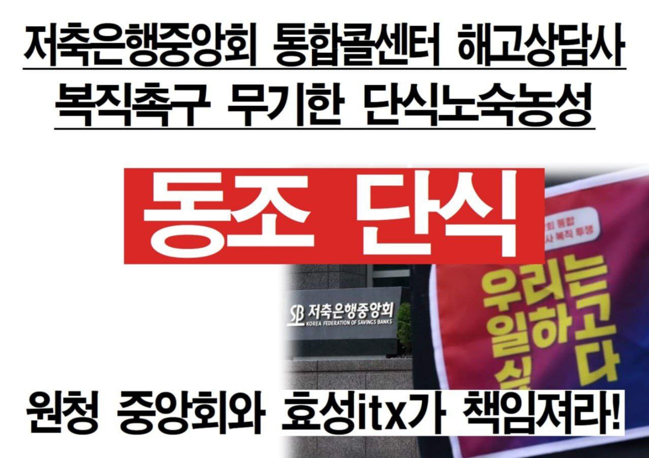 저축은행중앙회통합콜센터 해고자 복직 촉구 콜센터·노동시민사회 동조단식단 일동